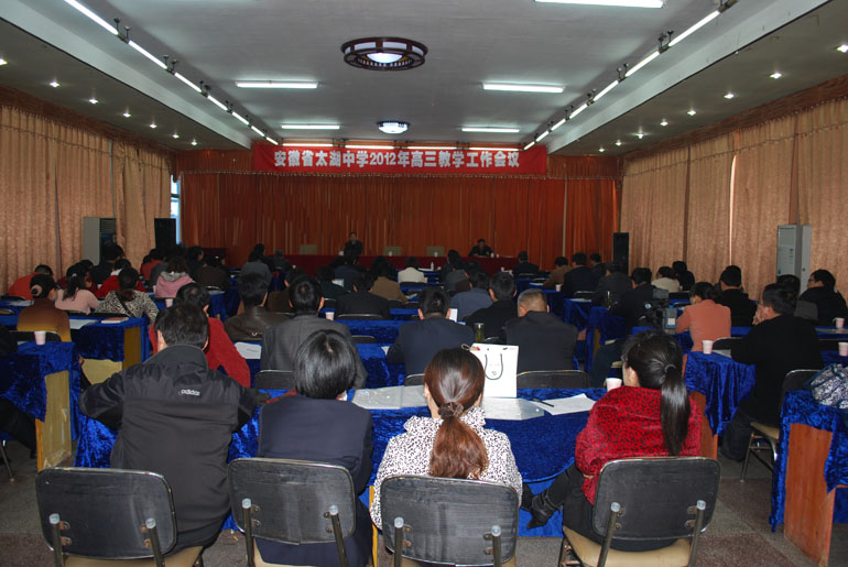 2012年4月1日,太中在龙山宫宾馆会议室召开高三教学工作会议。校长潘德安、副校长余赛飞、高三年级分管主任章朝晖、年级部长吴文明及高三各教研组长、任课教师等出席。教研室主任张学良主持会议。吴文明着重分析了两次模考情况,提出了巩固2011年高考成果,力争在全省100名排序上、600分以上人数上和班班达线率上有新的突破的总体工作目标。章朝晖讲话强调后期复习一要团结协作、聚思广益,二要强化常规管理、营造备考氛围,三要抓好落实、注重规范。教研室副主任李兆林分析了第一轮复习与第二轮复习的差别,强调指出复习后期回归“双基”的重要性。余赛飞提出了让学生每天都涨一分的工作口号,要求各班后期复习要重新升温,要让班级充满活力。班主任要多到班、多谈话、多鼓励。全体教师要认真钻研考纲、准确把握方向。训练要加强,要稳住语文、保住英语、提升数学、狠抓综合。他要求复读部要关注学生状态,晚自习严格考勤,综合学科试卷要及时批改。潘德安把此次会议的主题确定为:确立目标、细化责任、振奋精神、再创辉煌。他认真分析了今年的高考形势,对如何解决理科高分不高提出了自己的看法,特别强调了后期复习注重“双基”的必要性,再次要求大家加强安全意识,确保高考要万无一失。会后,各教研组分组对今年的《考试说明》作了认真的研讨。