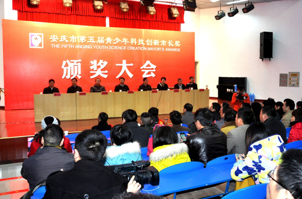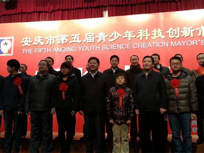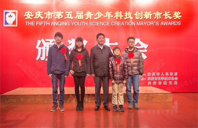 12月4日,安庆市第五届青少年科技创新“市长奖”颁奖大会在石化一中召开。市领导陶方启、胡南亭、洪爱敏,市政府秘书长江兴代,市科协主席丁一轩,市教育局局长沈波,市科协党组书记、常务副主席李琳等领导出席会议。市长魏晓明向我校学生章约非、詹小安颁发“市长奖”证书。同时,我校副校长李昭平也获安庆市优秀科技教师“市长奖”。这是我校继安庆市首届青少年科技创新“市长奖”后第四次获此殊荣。