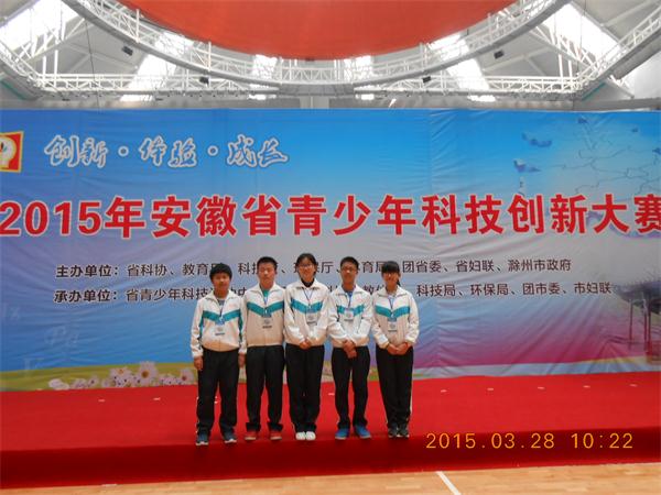 3月28日至30日,以“体验、创新、成长”为主题的2015年安徽省青少年科技创新大赛在滁州市隆重举行,此次大赛,有来自全省17个地市700多名选手的559件作品参加展示。我校参赛选手在副校长李昭平、团委书记陈占中的带领下参加比赛。