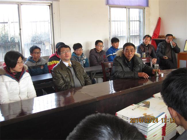 2014年12月24日,副校长李昭平、校团委书记陈占中、副书记陈俊国以及校文学社四名优秀学生代表,前往太湖县太平初中开展献爱心活动。