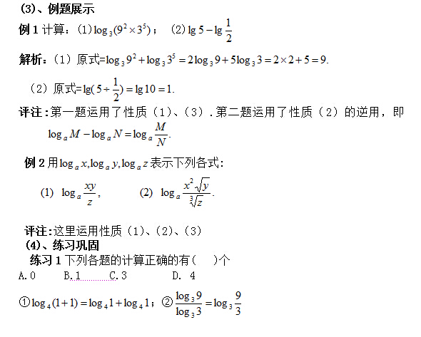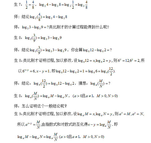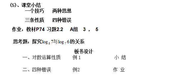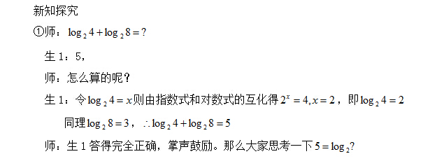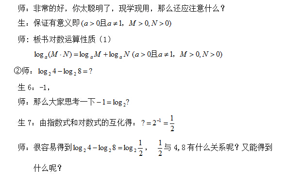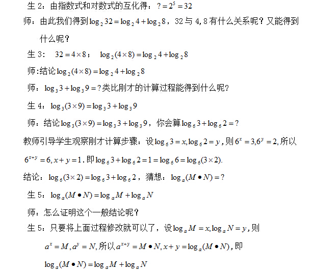 通过对数运算法则的学习,培养学生的严谨的思维品质;在学习过程中培养学生探究的意识;体会对数运算的性质的巨大作用和数学内在规律的统一性,增加学生的成功感,增强学习积极。