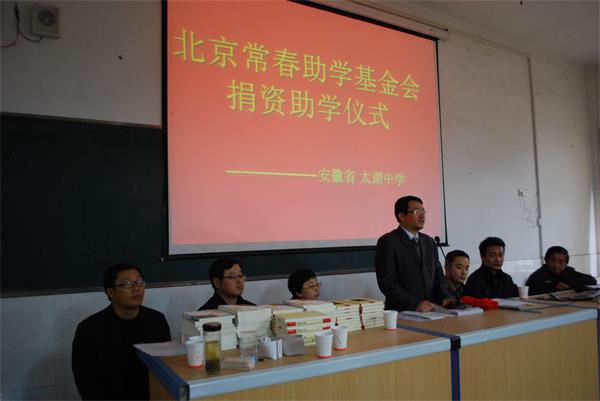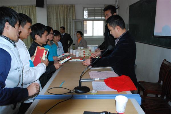 吴艳南主任主持会议并致欢迎辞,感谢赵长春先生及北京常春助学基金会对我校学生的关爱。副校长李昭平代表学校热烈欢迎北京常春助学基金会一行,感谢他们无私的奉献和爱心,并介绍了学校的相关情况。基金会田总详细地介绍了基金会的创办、资助等情况。基金会向受助学生捐赠了书籍《热爱生命》、《老人与海》以及助学款。王佳丽代表受捐赠的学生发言,表达了对基金会的感谢,立志认真学习,将来回报社会。