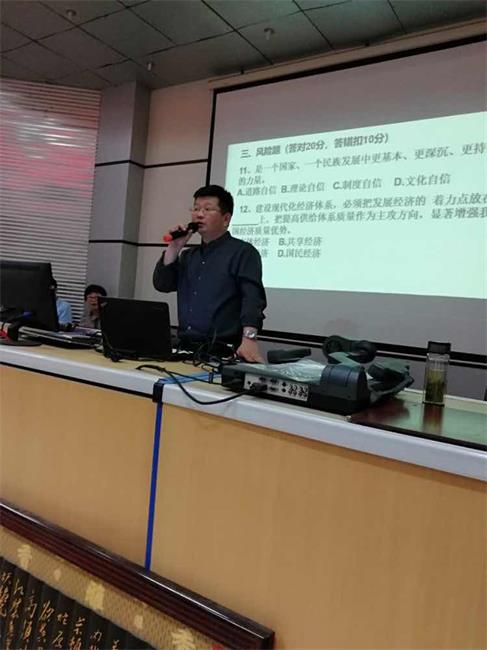 整场知识竞赛试题以所学政治知识为主,形式多样。把知识竞赛与趣味活动两种形式结合起来,既有激烈的竞争又有有趣的活动,竞赛取得圆满成功。